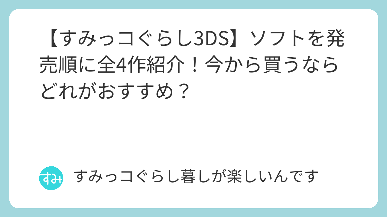 この記事では、ニンテンドー3DSで発売された、すみっコぐらしのゲームソフト全4作品を、発売された順番にご紹介します!